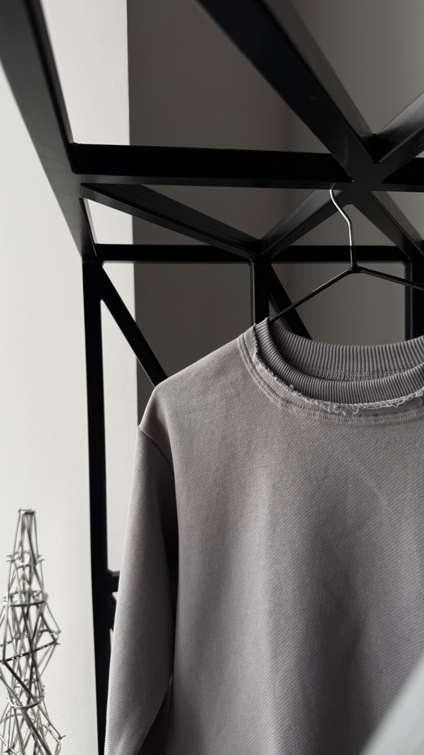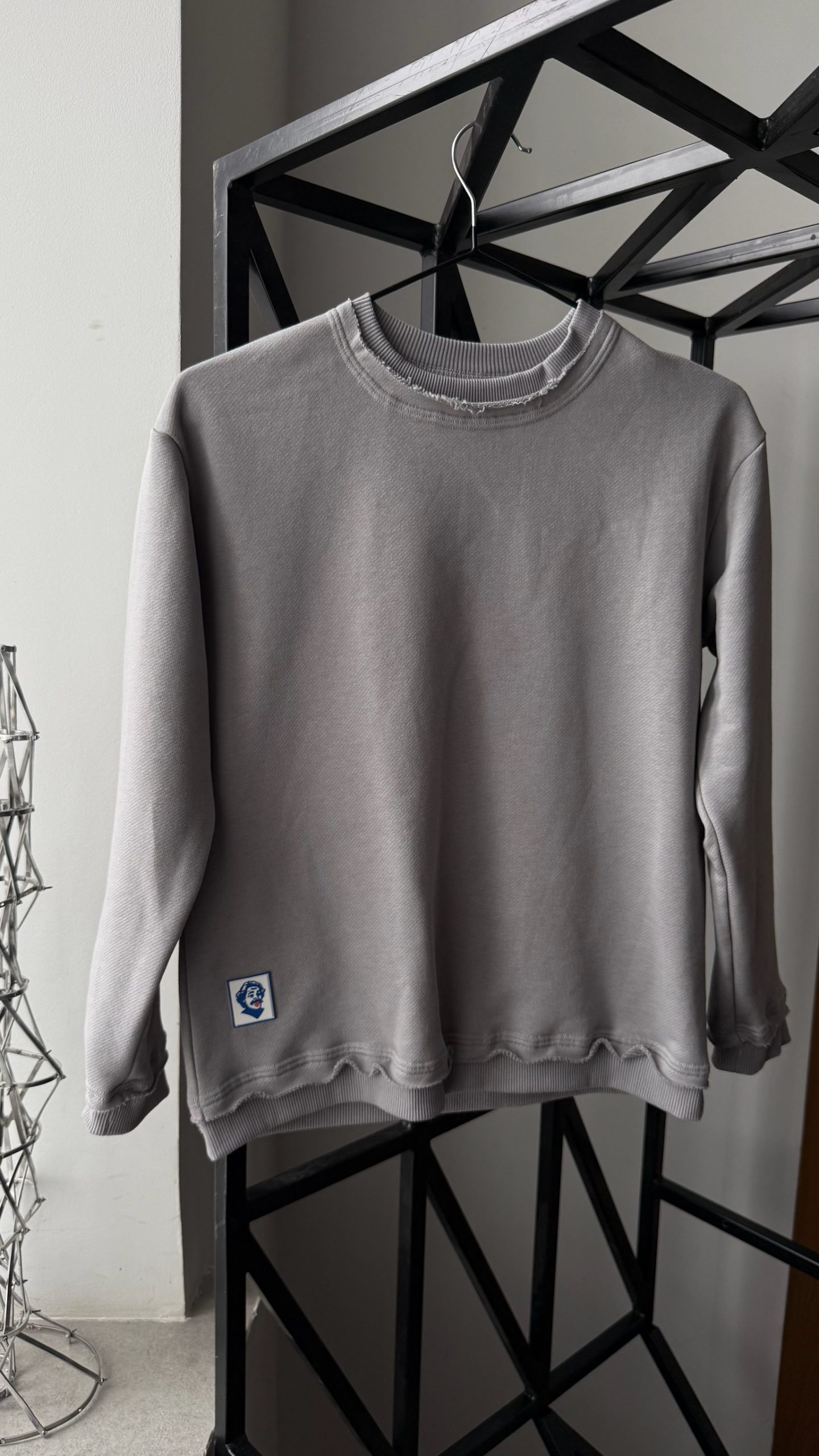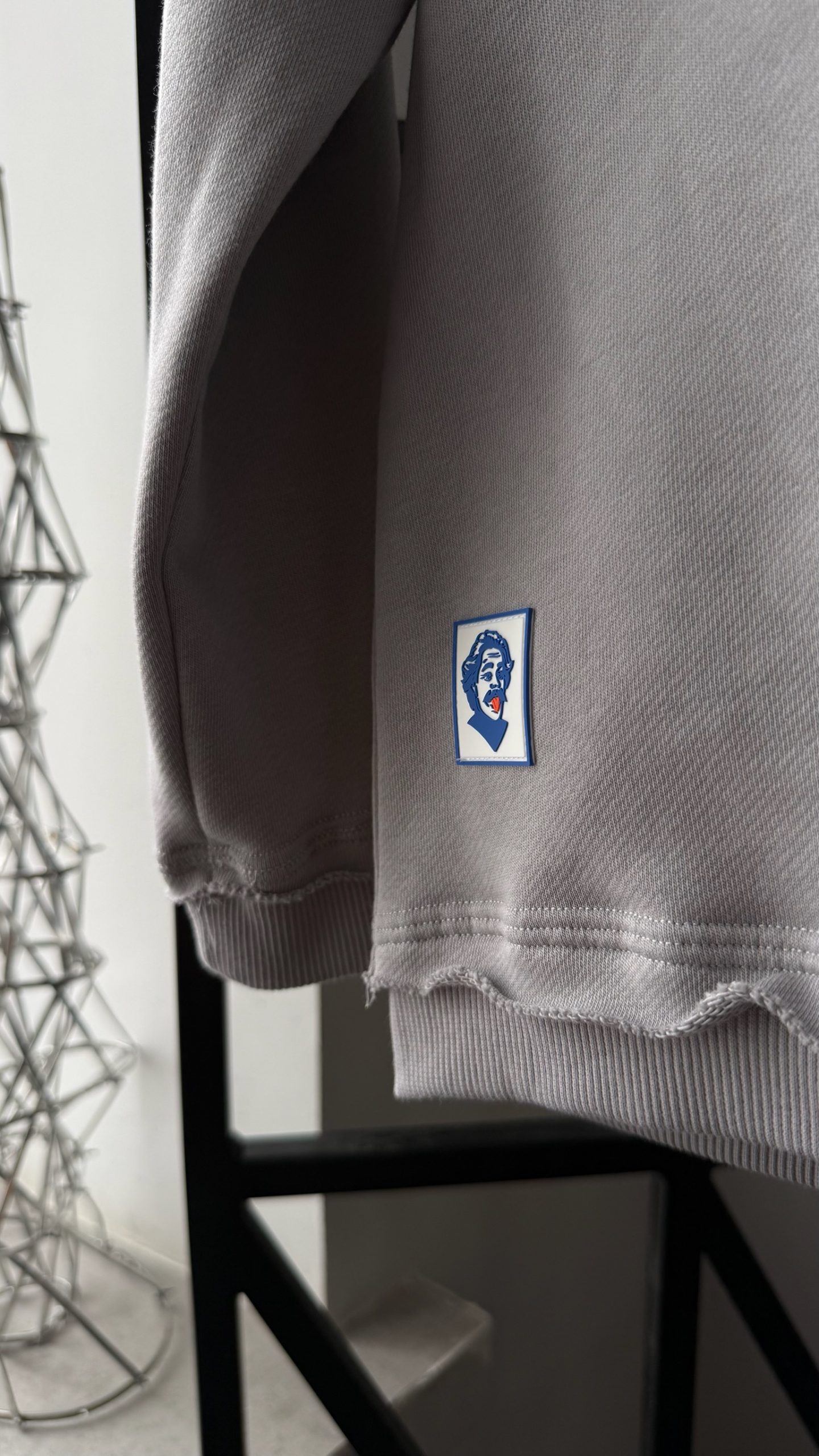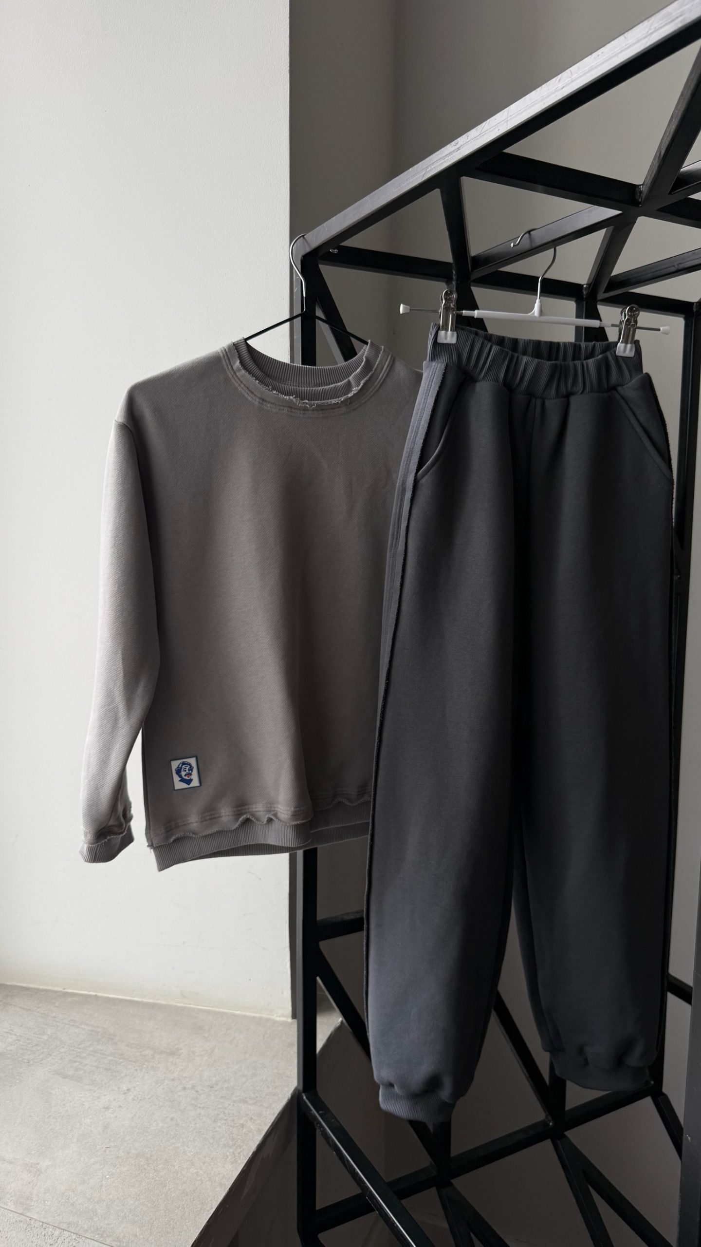 · Осознанный дизайн: Намеренно необработанные края по низу свитшота и брюк создают эффект шероховатости и аутентичности, перекликаясь с темой странствий и простой жизни героев.
